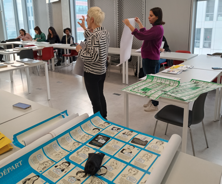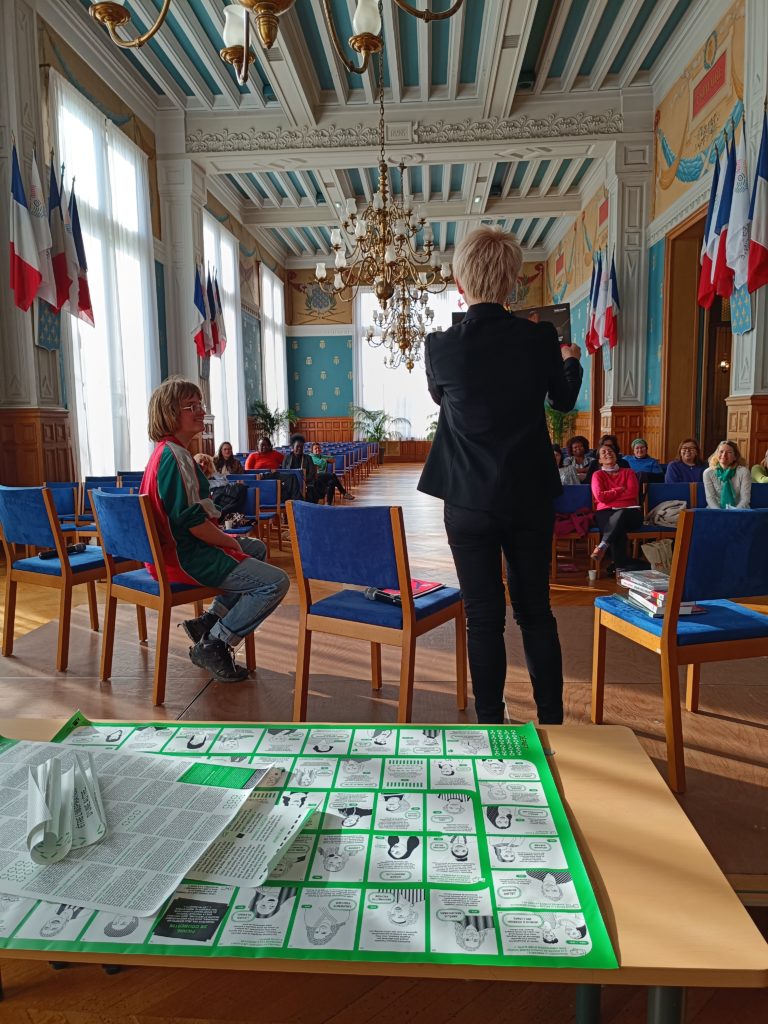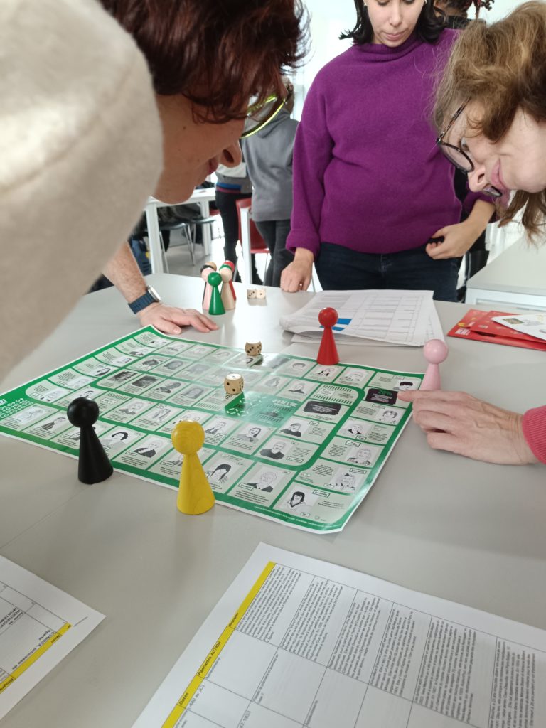 Rencontre autour des 4 jeux de l’oie de la Mission Droits des fememes le 6 février 2024 avec le réseau Plaine Commune puis lancement officiel le 7 mars 2024 à la Mairie de Saint-Denis et atelier-jeu à l’Académie du Climat au démarrage des JO 2024 !
