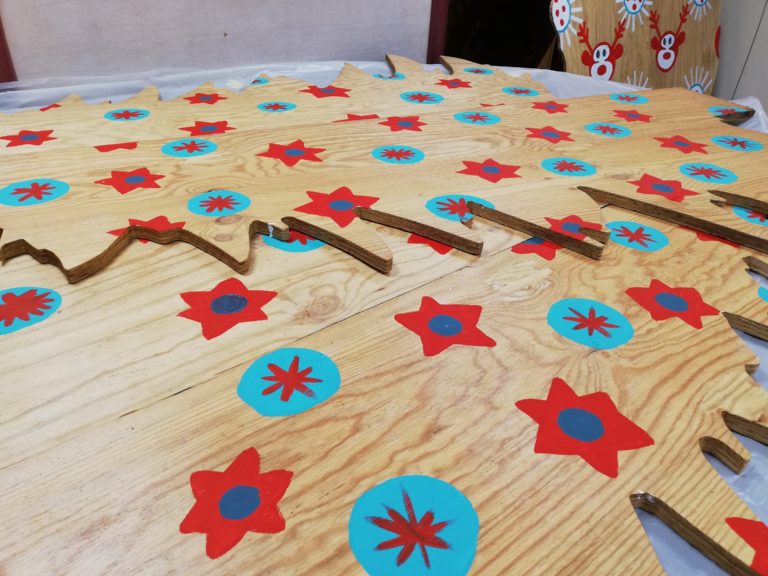 Retrouvez ici les différentes étapes du projet : de la peinture sur bois dans les locaux de la Mairie, jusqu’à la scénographie finale, inaugurée le 27 novembre et visible pendant quelques semaines encore, au 130 av. Daumesnil à Paris.