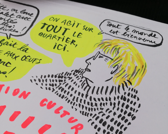 20 dessins A4 originaux livrés à @ville_ouverte et diffusés via une exposition dans l’espace public lors d’une fête de quartier.